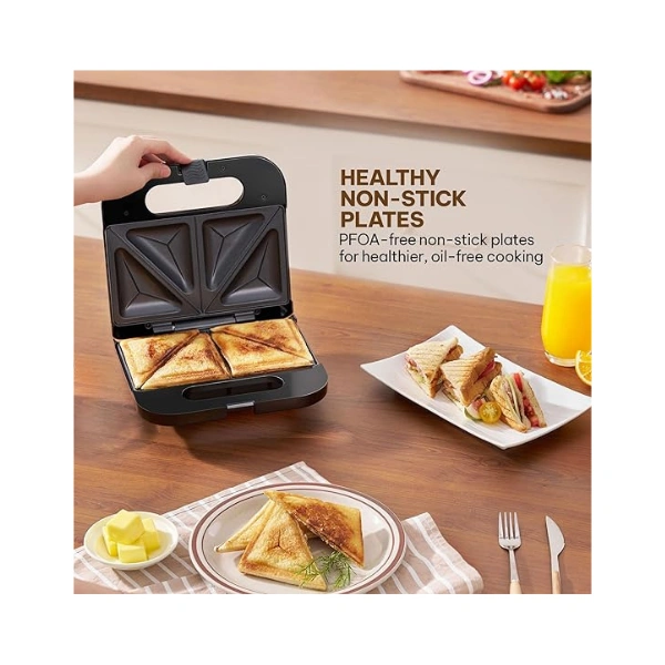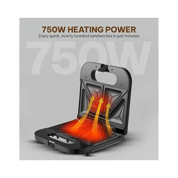 750W Power for Fast & Even Grilling: Heats up quickly to toast and grill sandwiches efficiently, giving you crispy, golden-brown sandwiches in minutes—ideal for busy mornings or quick snacks.