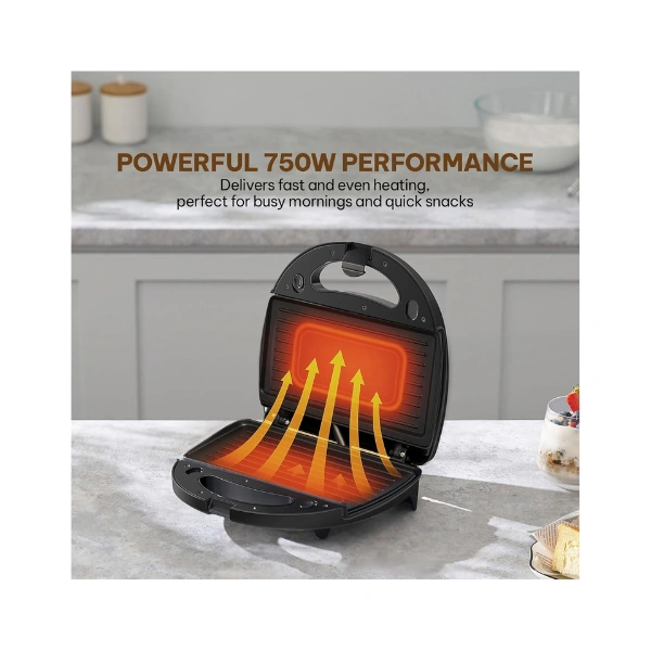 750W Power for Fast & Even Heating: High-performance heating element ensures your food is cooked evenly and quickly, giving crispy toast, fluffy waffles, or well-grilled meats and veggies in minutes.
