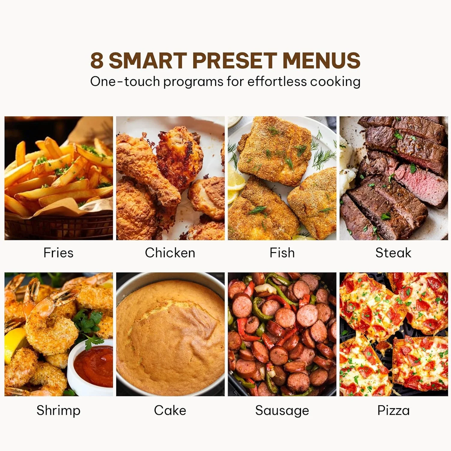 LED display with 8 preset cooking programs