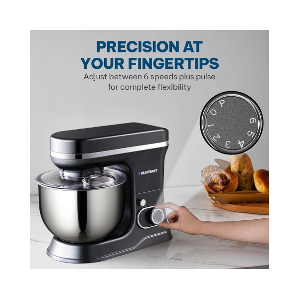 Blaupunkt Stand Mixer 1000W – PMS510: Powerful 1000W kitchen stand mixer with 6-speed settings and pulse function for precise mixing, kneading, and whipping.