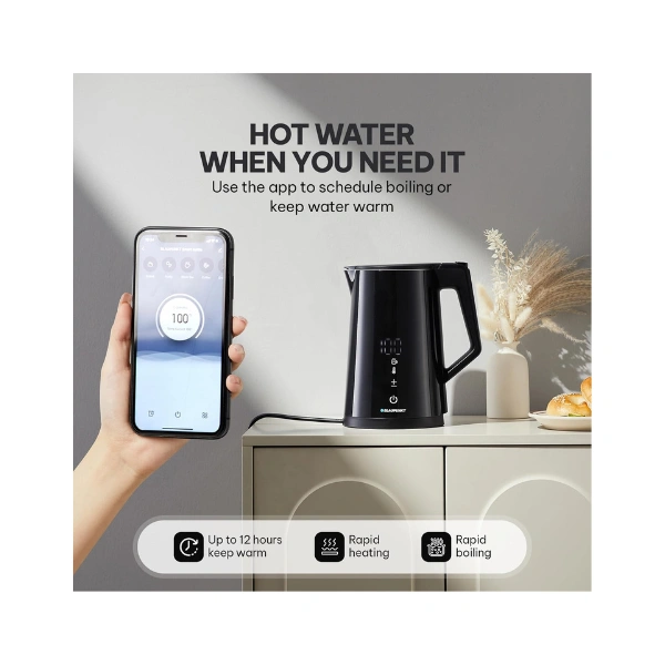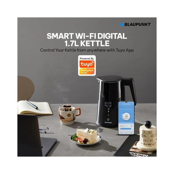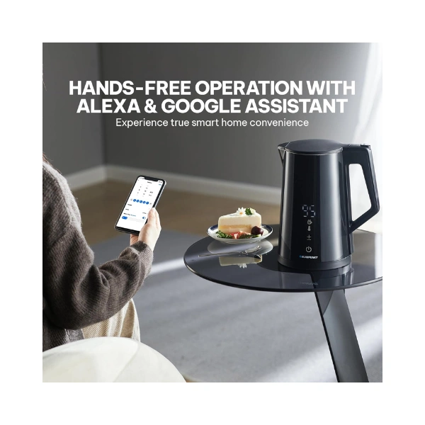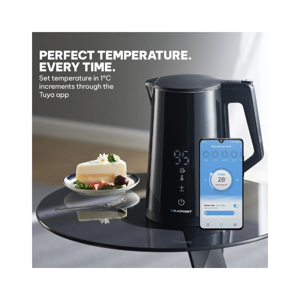 Blaupunkt Smart WiFi Cordless Kettle 2200W – 1.7L, Tuya App Control, Voice Assistant Enabled, Temperature Selection, Timer, Auto Shut-Off, Double Wall Cool-Touch Body, Stainless Steel – BKW825