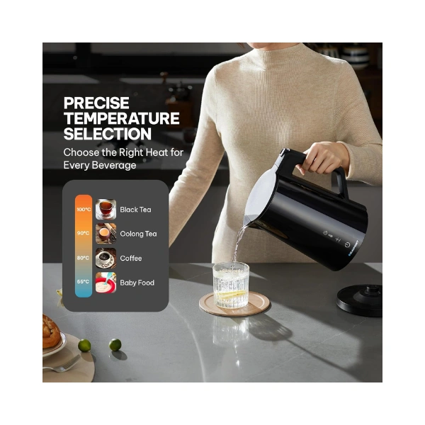 Precise Temperature Control: Choose water temperature in 1°C increments via the app or use preset levels (100°C, 90°C, 80°C, 55°C, 40°C) for tea, coffee, baby formula, and more.