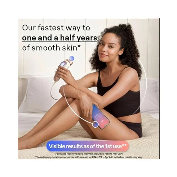 Integrated app connectivity guides you through treatments, monitors usage, and maintains consistent results. Clinical use shows visible hair reduction in just 3 weeks, with up to 95% reduction after one month.