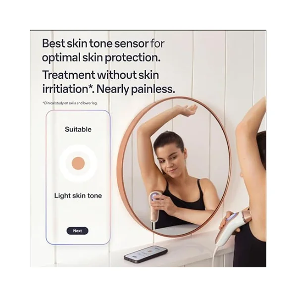Achieve smooth, hair-free skin with the Braun i·expert Pro 7 PL7147 IPL device. Equipped with Smart SkinAdapt technology, it continuously reads your skin tone and adjusts light intensity automatically, delivering safe and effective treatment across all body areas.