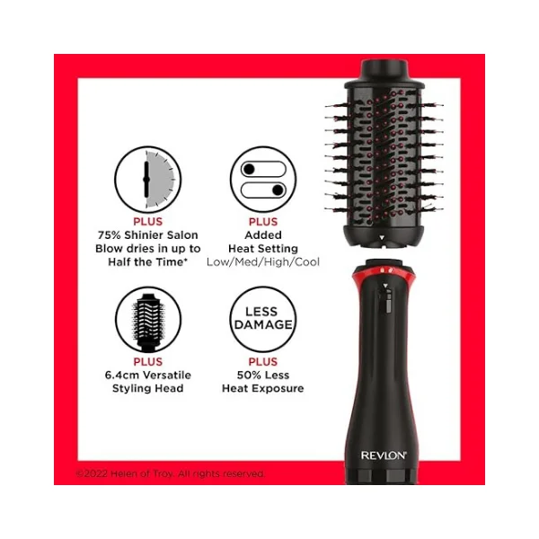Revlon One-Step Volumizer RVDR5298ARB – Detachable Barrel Hot Air Brush, Ionic + Ceramic, 3 Heat/Speed Modes + Cool Shot, Black/Red Accent, 220-240V