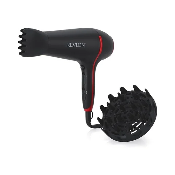 Revlon SmoothStay Coconut Oil-Infused Hair Dryer – 3 Heat / 2 Speed + Cool Shot, Diffuser & Concentrator, Ionic Ceramic Technology, Black